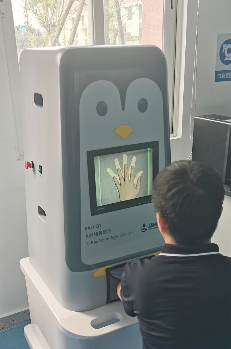 品源醫(yī)療X射線骨齡儀的便捷操作體驗也為日常使用帶來便利。配備的手部限位圖、監(jiān)控屏監(jiān)控擺位以及軟件視頻監(jiān)控功能組成的三方位定位系統(tǒng),能幫助操作人員快速、準(zhǔn)確地定位檢測區(qū)域,減少重復(fù)拍攝,提升檢測效率。雙監(jiān)控顯示窗口的設(shè)計,使操作人員與被檢者可同步觀察擺位情況,增強(qiáng)檢測過程的透明度與互動性。此外,BAD-Q1采用企鵝造型的卡通化外觀設(shè)計,色彩柔和,兒科專用參數(shù)設(shè)置避免過度曝光,充分考慮受檢人群心理與生理特點,緩解在檢測時的緊張情緒,保障檢測的安全性與舒適性。